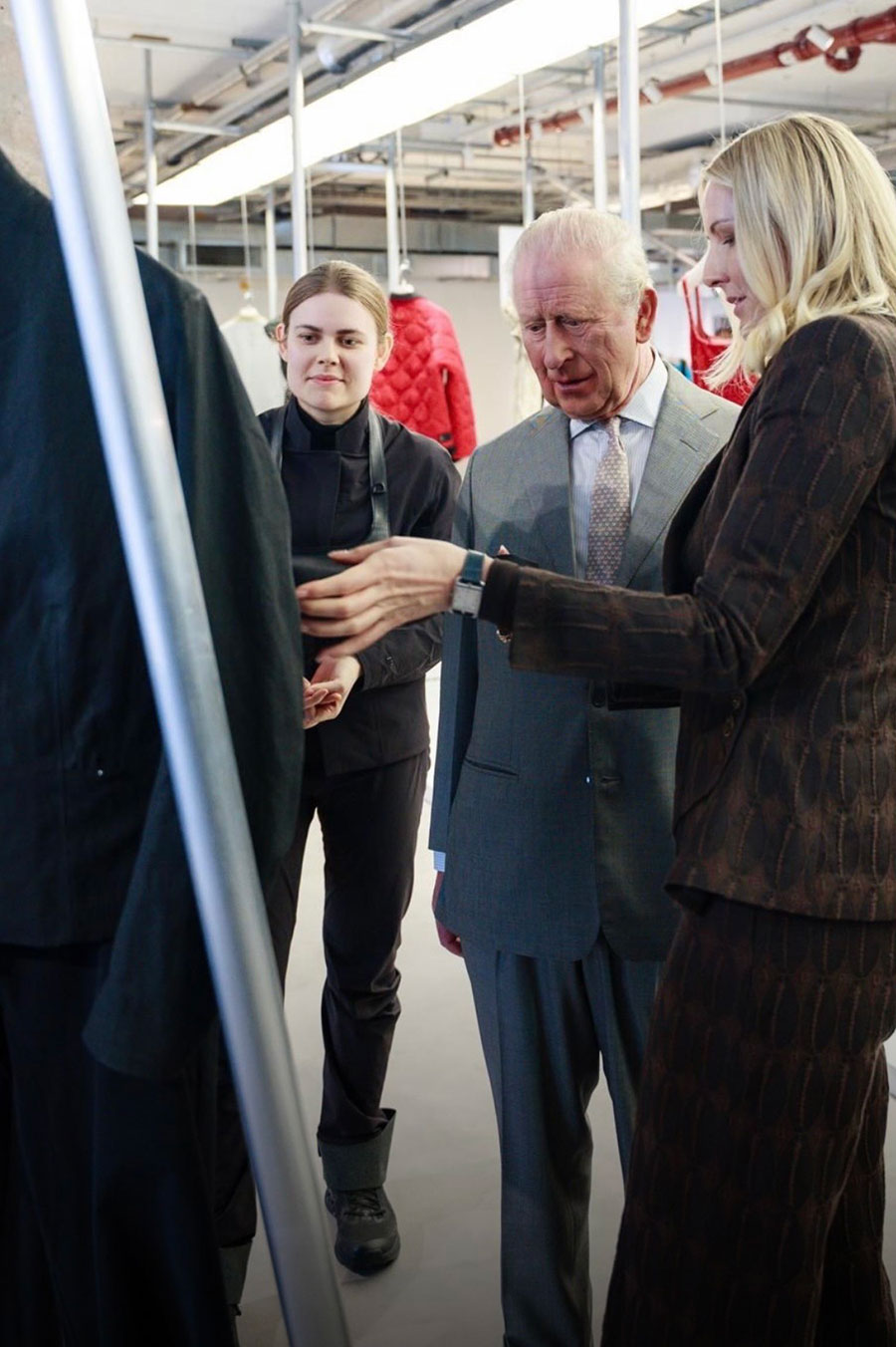 HM King Charles III officially opening London Fashion Week at the 180 Strand venue, surrounded by British fashion industry leaders