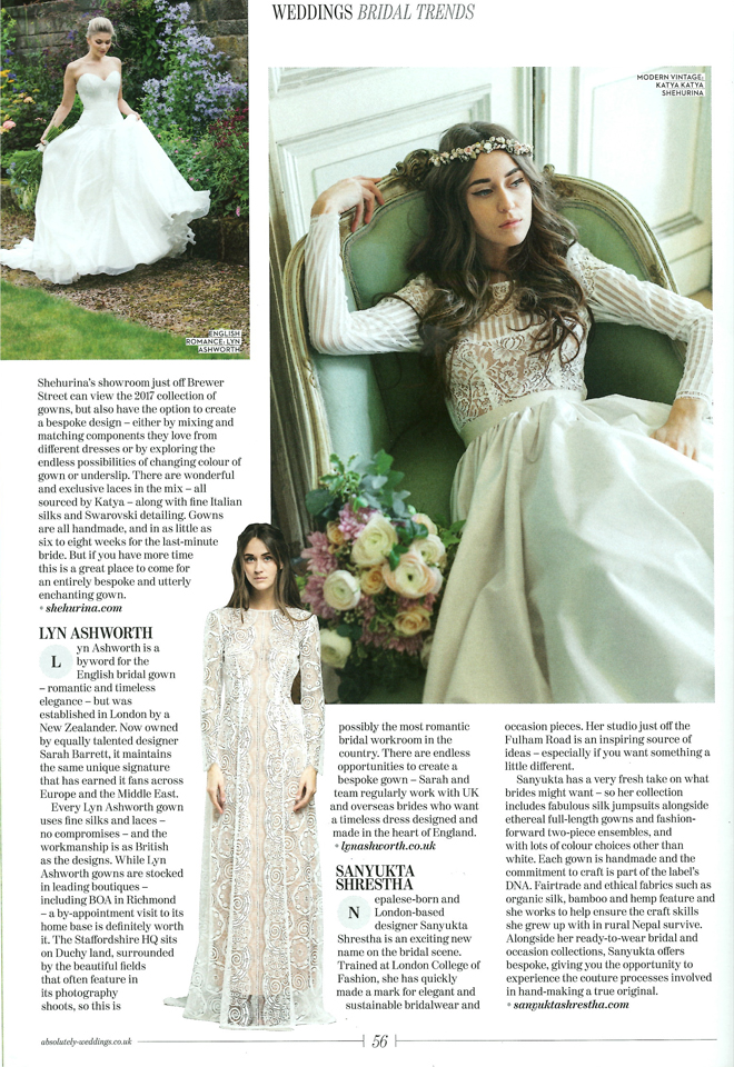Sanyukta Shrestha featured in Absolutely Weddings as one of the ‘Best British Designers to Know’.